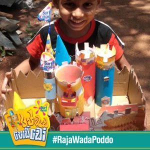 දක්ෂතාවලින් පිරිපුන් වයස අවුරුදු 5 – 11 අතර පොඞ්ඩන් ඉවතලන ද්රව්ය සහ Surf excel පැක් යොදාගෙන එකිනෙකට වෙනස් වූ නිර්මාණ සකසා Surf fb page එකට වගේම WhatsApp සහ Viber හරහාත් අප වෙත එව්වා. ඒ විතරක්ද Surf excel වැඩමුළුවලට සහභාගී වූ දරු දැරියන් ද ඔවුන්ගේ නිර්මාණ අප වෙත ලබාදුන්නා. ඒ සියලුුම නිර්මාණශීලී දරුවන් අතරින් දක්ෂතම පොඞ්ඩන් Surf excel රජ වැඩ පොඞ්ඩෝ වැඩසටහනේ ජයග්රාහකයන් අතරට තේරුණා. ඒ අතරින් යුනිවර්සල් ස්ටුඩියෝ නැරඹීමට යාම සඳහා අවස්ථාව දිනාගනු ලැබුවේ නෙතායා, කලන සහ සයීඞ් යන නිර්මාණශීලී රජ වැඞ්ඩන් තිදෙනාය. ඒ වගේම තමන්ගේ නිර්මාණ පළමුවෙන්ම Surf fb page එකට වගේම WhatsApp,Viber හරහා නිර්මාණ එවූ දරුවන් ද වැඩමුළුවලට සහභාගී වී අප වෙත නිර්මාණ ලබාදුන් දරුවන් ද ඇතුළු සියලුම පොඞ්ඩෝ අතරින් දස දහසක් මැජික් වොච් දස දහසක් දිනාගත්තා.